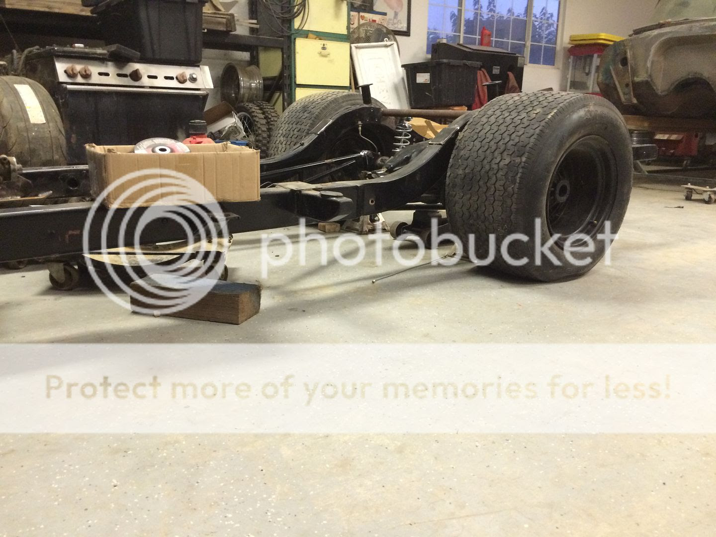 Did a trial fit of a set of wheels and tires that were in the shop. Perfect fit. Set the pinion angle and will test fit the chassis under the car.